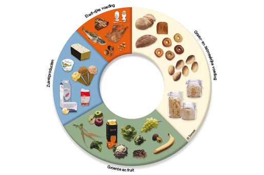 - Balanceer uw voedinginname. Probeer een beetje van alles te eten uit de hieronder getoonde voedingscirkel.