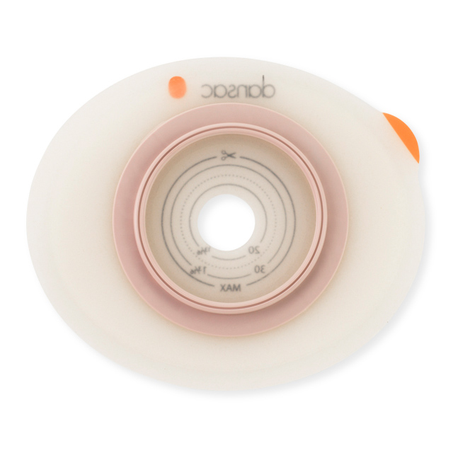 - Door zwevende flens/ring volgt de huidplaat de contouren van de huid. Het opvangzakje kan op de flens aangebracht worden zonder druk op de buik te geven